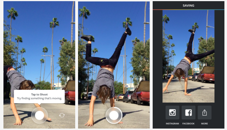Ușor de folosit, aplicația este foarte prietenoasă. Te invită să capturezi lucrurile care merg așezate într-un loop continuu, prin simpla apăsare a unui buton. Ce face este să lipească pozele dintr-un burst rapid într-o însăilare (ca) pe ață. Tehnic, e aidoma desenelor animate de pe vremuri, care erau schițate într-un carnețel apoi rulate repejor, filă cu filă. Nu s-a reinventat roata, ci doar sa redecorat. Ulterior poți face upload producției unde ai pofte.